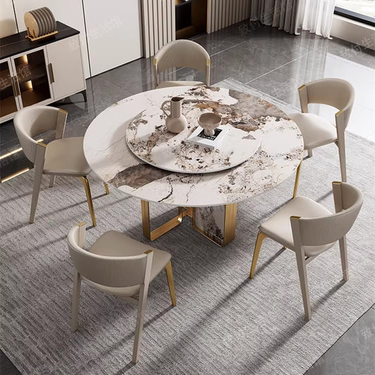 47" Contemporary Round Sintered Stone-top Dining Table in Pandora & Gold