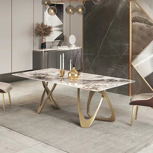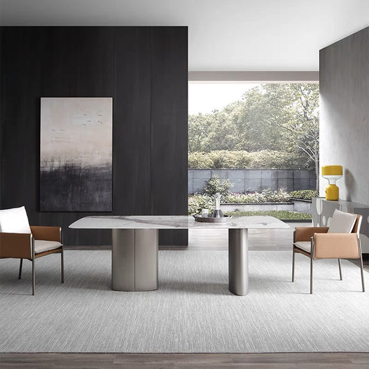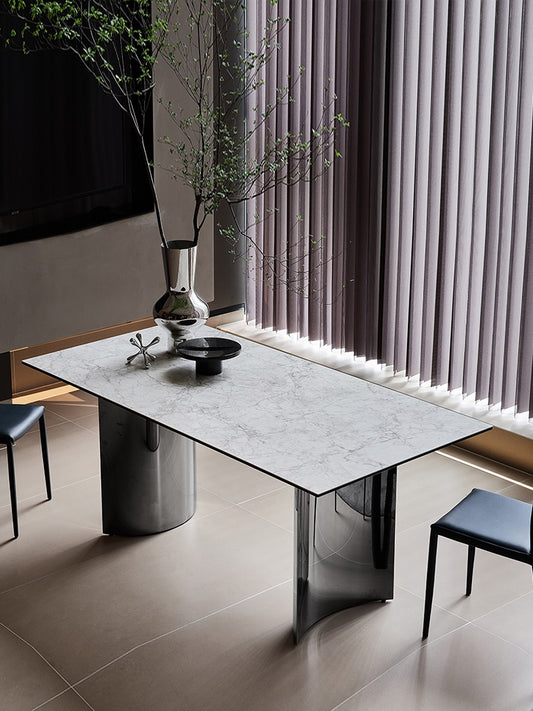 Contemporary Rectangle Sintered Stone & Stainless Steel Dining Table