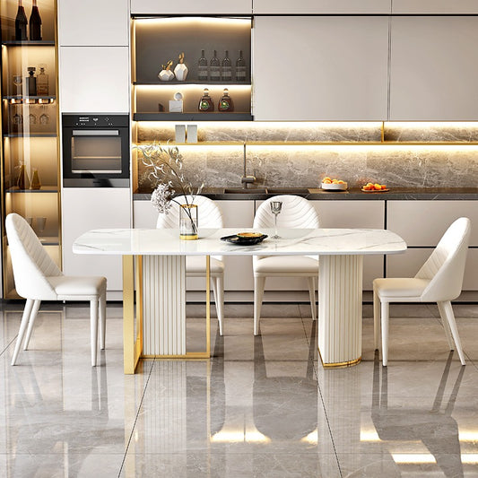 70.9" Modern Rectangular Sintered Stone Dining Table with Double Pedestals
