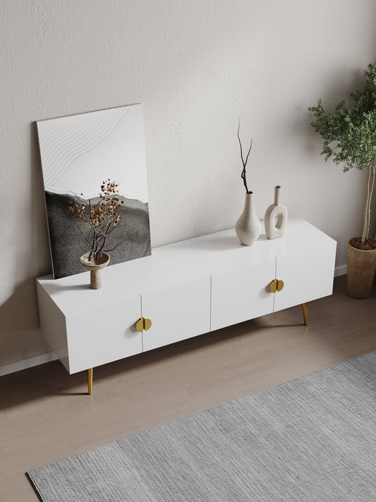 63" Minimalist Design Matte White TV Stand with Gold Accent