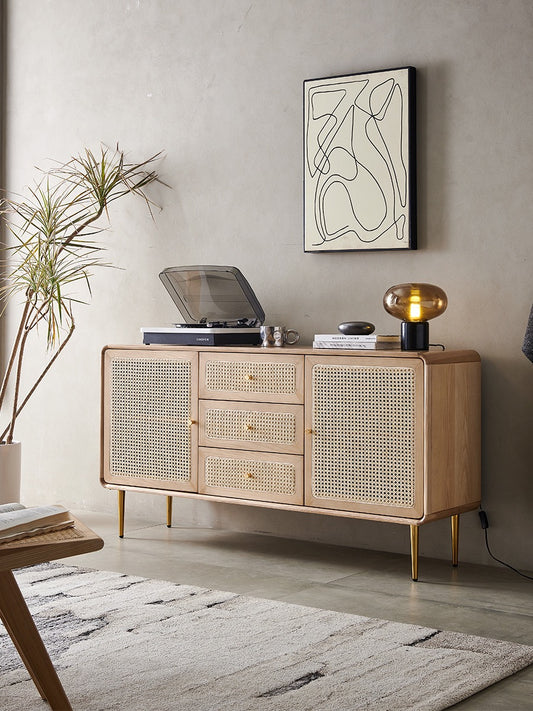 Natural Woven Rattan Sideboards Buffets with Hidden Door