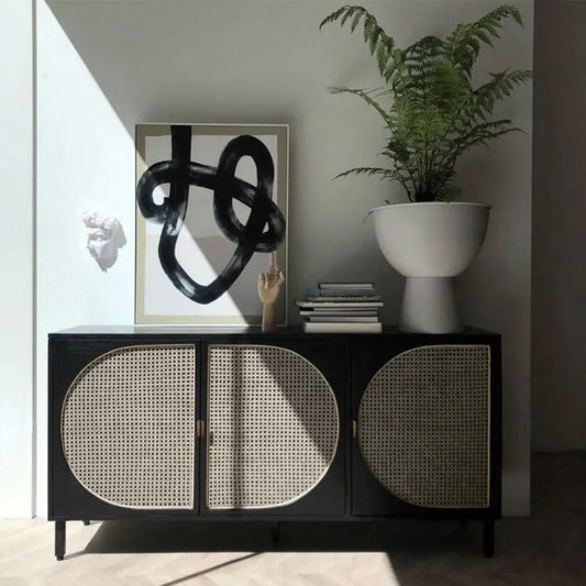 Rattan Woven Arch Sideboard Cabinet Bookcase