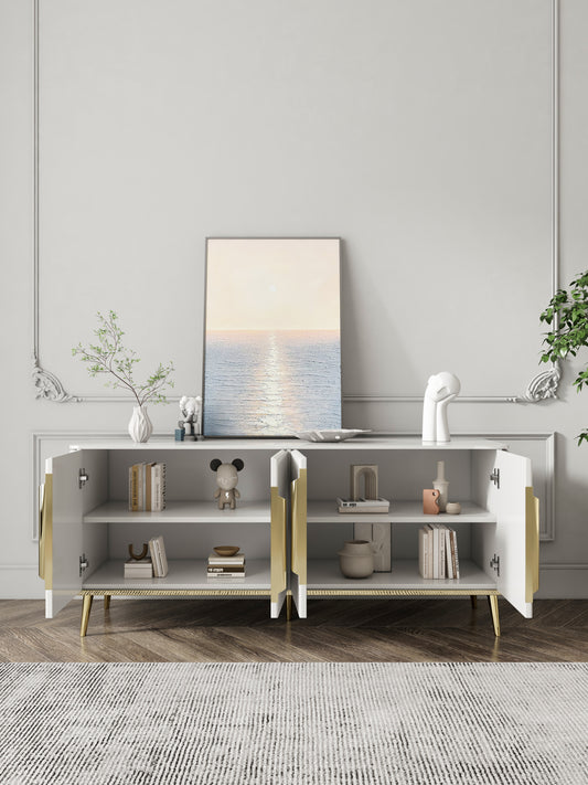 63" White TV Stand for 70 Inch TVs with Storage 4 Doors Gold Handles